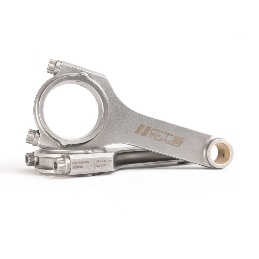 CTS Turbo представляет кованые шатуны I-образной формы собственной разработки, оптимизированные для использования с тюнинговыми поршнями. Эти шатуны, оснащенные отверстием для смазки пальца поршня, как и оригинальные, отличаются высокой точностью изготовления. Благодаря хонингованию больших и малых головок на профессиональном оборудовании и строгому контролю качества, включающему измерения на КИМ, шатуны CTS обеспечивают превосходную надежность и производительность. Вес каждого шатуна выверен с точностью до +/- 1 грамма.