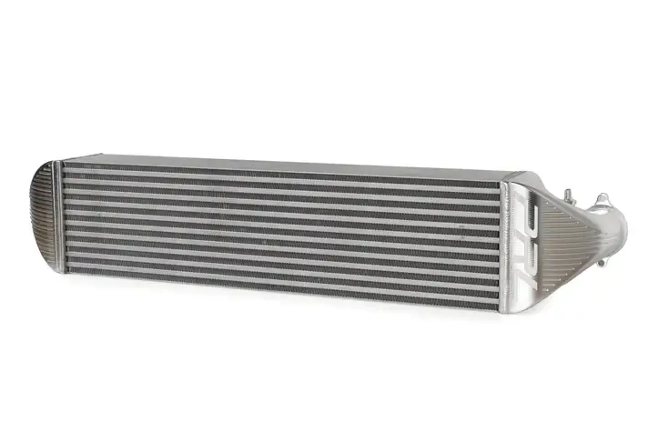 Этот интеркулер использует заводские места крепления с торцевыми баками из алюминия, а также все заводские воздуховоды/кожухи. Ребра интеркулера были удлинены, чтобы занимать всю ширину отверстия переднего бампера, чтобы увеличить охлаждение интеркулера и радиатора.