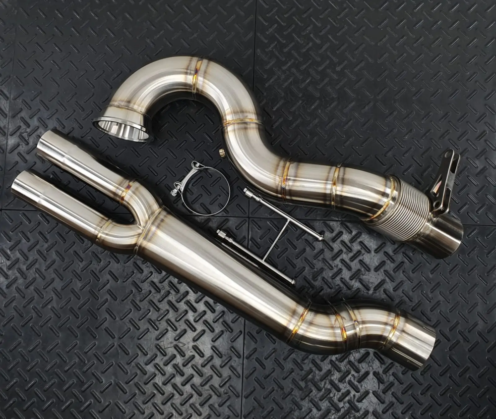 Оптимизированный дизайн: Даунпайп имеет переменную геометрию для улучшения потока выхлопных газов: начальный диаметр 88.9 мм (3.5 дюйма) плавно переходит в 76.1 мм (3 дюйма), а затем раздваивается до 60/65 мм для совместимости со штатной выхлопной системой.