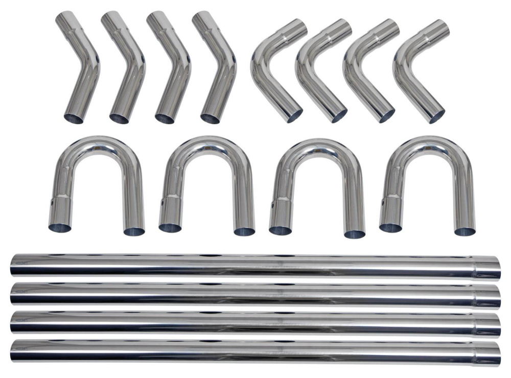 Комплект выхлопной трубы, от коллектора до патрубка, сварной, нержавеющая сталь 304, 18 калибр, полированная, диаметр 3,00 дюйма, универсальный, комплект.